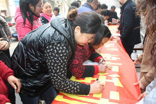 322日上午,區(qū)自來水公司與玉帶社區(qū)等單位聯(lián)合舉辦“地球一小時”熄燈宣傳倡議活動,共同向社會廣大市民發(fā)出關愛地球,關電熄燈的倡議,共享環(huán)保一小時,公司員工代表紛紛在活動條幅上簽名,做出自己的環(huán)保承諾,同時,活動也得到了廣大市民的積極參與與響應。