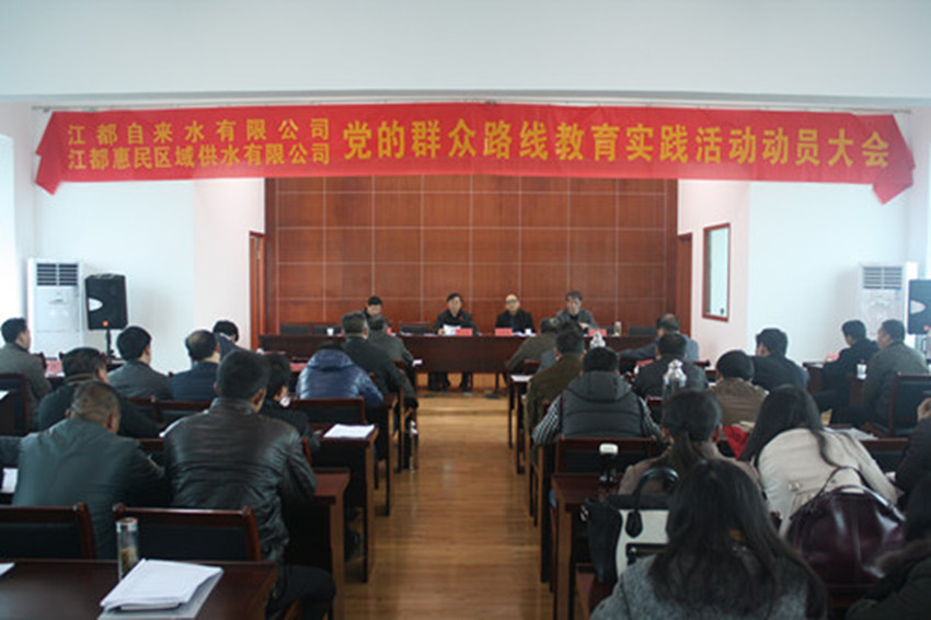 3月25日下午,區自來水公司、惠民區域供水公司聯合召開黨的群眾路線教育實踐活動動員大會,區城鄉建設局副局長許金林、局督導組相關負責同志陳修榮、黃坤出席會議,公司全體黨員干部和老領導、退休黨員干部、服務對象代表共80余人參加了會議。