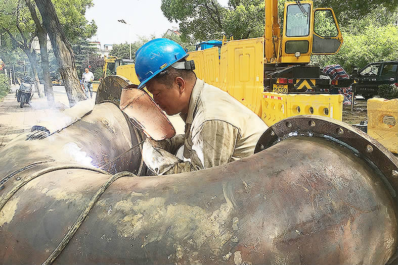 焊接管道是自來(lái)水管網(wǎng)連接的常見(jiàn)作業(yè)工種。戴上嚴(yán)嚴(yán)實(shí)實(shí)的防護(hù)面罩,穿上厚厚的勞保服,戴上手套,焊工朱忠東臉上掛滿汗珠,衣服已經(jīng)濕透,可他顧不上擦拭,埋頭繼續(xù)工作。他告訴記者,夏天焊接,雖然天氣炎熱,但還是必須穿得嚴(yán)嚴(yán)實(shí)實(shí),手腳皮膚都不能裸露,防止被電焊時(shí)產(chǎn)生的火星灼傷。