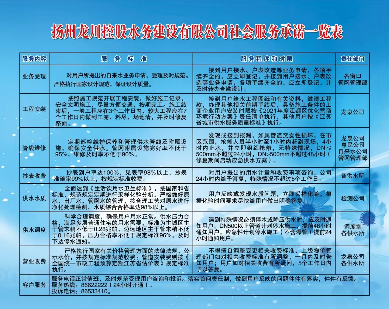 違章用水舉報(bào)/投訴電話:0514-86622222 查詢水費(fèi)電話:0514-86532936