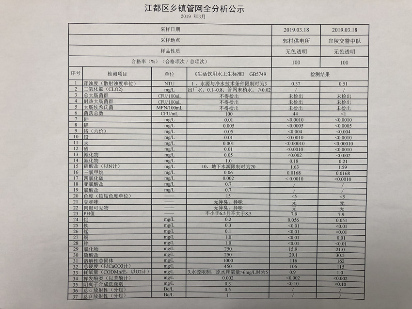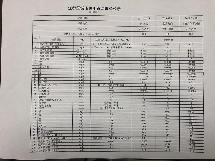 水質(zhì)公示