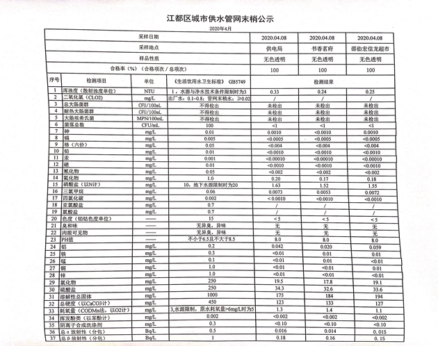 水質(zhì)公示
