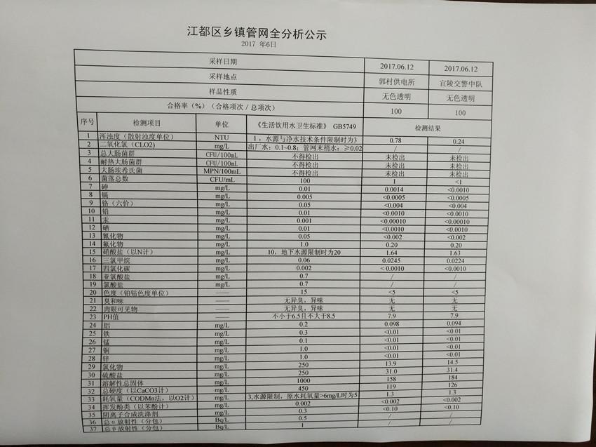 2017年6月江都區(qū)鄉(xiāng)鎮(zhèn)管網全分析公示