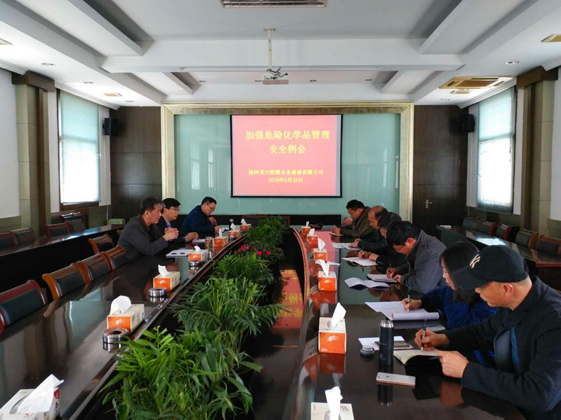為深入貫徹落實深圳水務投資公司《安全生產管理考核辦法》及《揚州市江都區2019年危險化學品安全監管工作要點》通知精神,3月25日下午,揚州龍川水務公司召開了危險化學品管理及安全工作會議,公司相關領導和各子公司安全負責人參加了會議。王智勇總經理強調,各單位要深刻吸取江蘇響水天嘉宜化工有限公司“3·21”爆炸事故教訓,扎實開展危險化學品及安全生產隱患排查整治,對檢查發現的隱患問題,建立工作臺賬,逐項落實整改堅決防范和有效遏制事故發生。