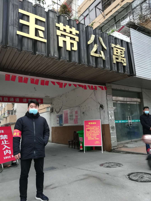 圖為王俊同志主動請戰,積極深入玉帶社區,開展聯防聯控志愿服務工作。