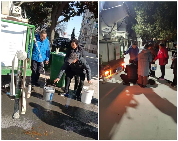 1月4日,經(jīng)過研究,并與物業(yè)公司協(xié)商后,制定以下方案:1.公司迅速增派送水車趕赴真武、邵伯兩地,為無水用戶進行送水服務(wù),由物業(yè)公司負責維持送水車秩序;2.對有消火栓的小區(qū),打開消火栓,方便居民取水;3.通過用高壓鍋燒水,形成熱蒸氣,通過橡膠管將蒸氣充入供水管道內(nèi),逐漸將冰塊融化;4.對有人居住的房屋,逐戶檢查室內(nèi)銅接頭,防止出現(xiàn)化凍時銅接頭松動漏水,造成用戶損失;5.對無人居住的房屋,暫時關(guān)閉樓下表前表后閥門,待用戶回家檢查后及時打開閥門。