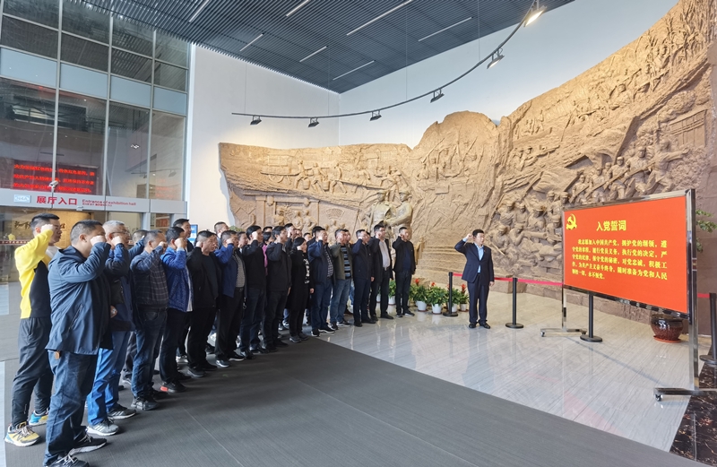 在黃橋戰役紀念館新館一樓大廳,在渡江戰役紀念壁畫群像前,黨總支副書記王智勇同志還帶領廣大黨員重溫了入黨誓詞。鏗鏘有力的宣誓聲,表達了“不忘初心、牢記 使命”的堅定政治信念和矢志不渝的奮斗信心和決心。