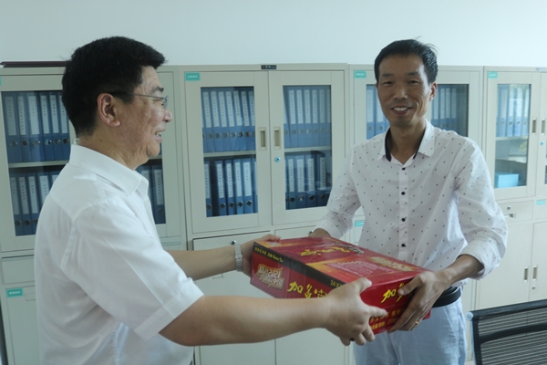 714下午,在總經理王智勇的帶領下,公司領導班子代表和相關職能部門帶著防暑降溫物品先后深入供水生產、水質化驗檢測一線、管道施工現場和鄉鎮供水所、污水處理廠,集中進行夏季高溫慰問活動,為默默揮灑汗水的一線工作者們送上清涼飲料等慰問品。王智勇總經理每到一處都詳細詢問了他們的工作和生活情況,對大家不畏酷暑堅守工作崗位的精神表示衷心的感謝,并叮囑他們在高溫天氣下勞作要保重身體,既要戰高溫斗酷暑完成本職工作,也要確保身心健康,時刻注意高溫下的安全勞作。