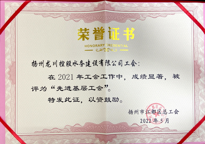 揚(yáng)州龍川水務(wù)公司工會(huì)榮獲“先進(jìn)基層工會(huì)”稱(chēng)號(hào) 水務(wù)公司四個(gè)班組榮獲“工人先鋒號(hào)”稱(chēng)號(hào)