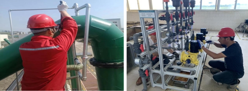 設施維護方面,第二、三水廠制水運行人員增加供水設施的巡查頻次,細致察看設備的運行狀況。機電維修人員每天按計劃對供水設施進行定期保養(yǎng),做好三級維修保養(yǎng)記錄,保障生產(chǎn)的穩(wěn)定。