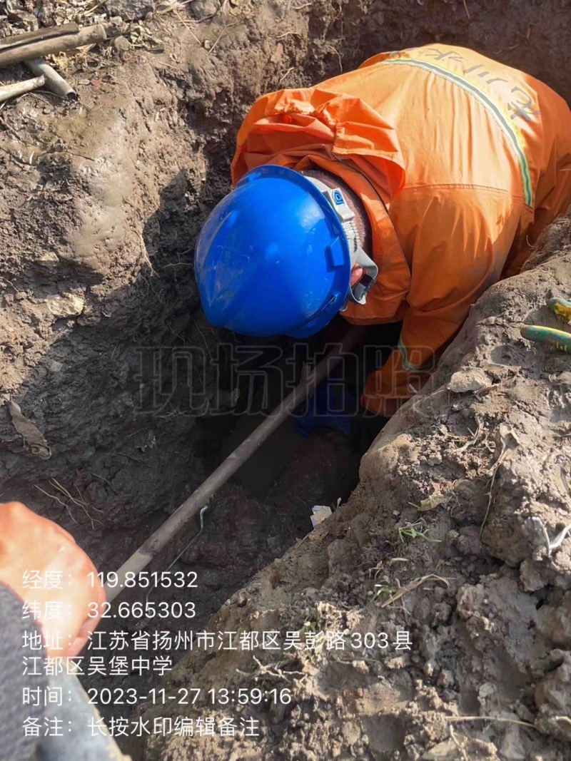 下午一點(diǎn),安裝維修工彭扣榮師傅正在東片區(qū)小紀(jì)鎮(zhèn)吳堡小學(xué)北側(cè)維修D(zhuǎn)N160的鋼管,此處水管埋得較深,彭扣榮師傅用鐵鍬挖出了長一米多,近半米深的溝槽。經(jīng)過一下午的忙碌,師傅在漏水處安裝抱箍維修,將漏水處修復(fù)完好。