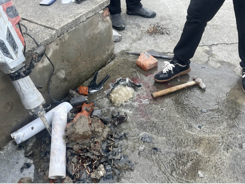 11月27日上午八點(diǎn),安裝維修工郭亮師傅在南片區(qū)宜陵鎮(zhèn)大陳村維修水管。郭亮師傅先用風(fēng)鎬破碎水泥路面,路面破開后發(fā)現(xiàn)漏水嚴(yán)重,由于大陳村所屬區(qū)域沒有控制小范圍的閥門,為了不造成大面積停水,不影響周邊居民的正常用水,在寒冷的冬季,郭亮師傅選擇涉水維修作業(yè),經(jīng)過兩個多小時的搶修,將該處漏點(diǎn)止住。