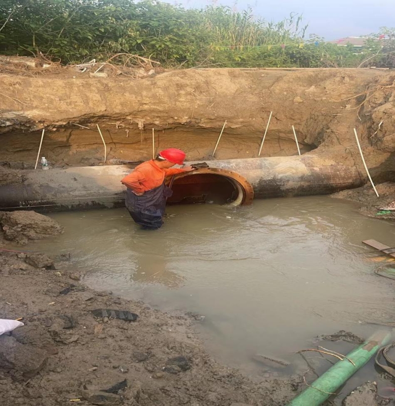 揚州龍泉建設工程有限公司韓春暉經理和龍川控股水務建設有限公司管網部張波部長親自帶隊,在停水前抵達現場親自指揮。